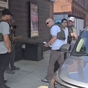The incident, reportedly filmed by a local progressive activist, shows ICE Enforcement and Removal Operations agents detaining a man outside the courthouse. The person behind the camera asks for his name and where he’s originally from.