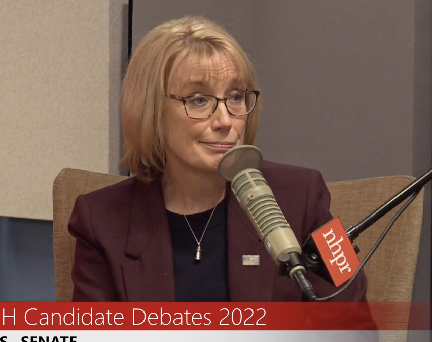 Moderator Josh Rogers of NHPR asked Hassan about her unwillingness to hold public campaign events, contrasting her campaign style to Bolduc, who is “holding lots of open events, taking lots of questions from whoever shows up.”