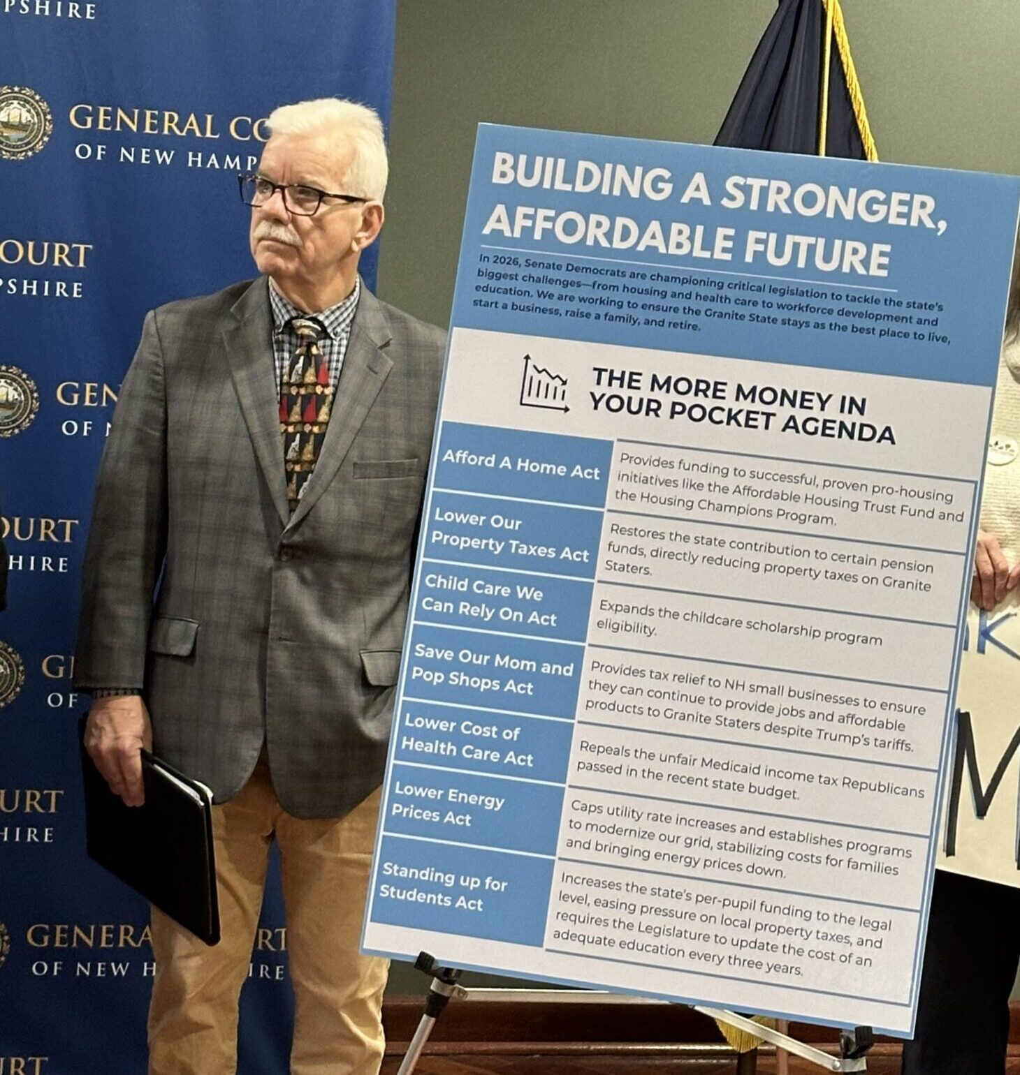 New Hampshire state Senate Democrats’ plans for the 2026 legislative session were on full display at a Wednesday press conference. More state money for child care, pensions, housing, and schools.