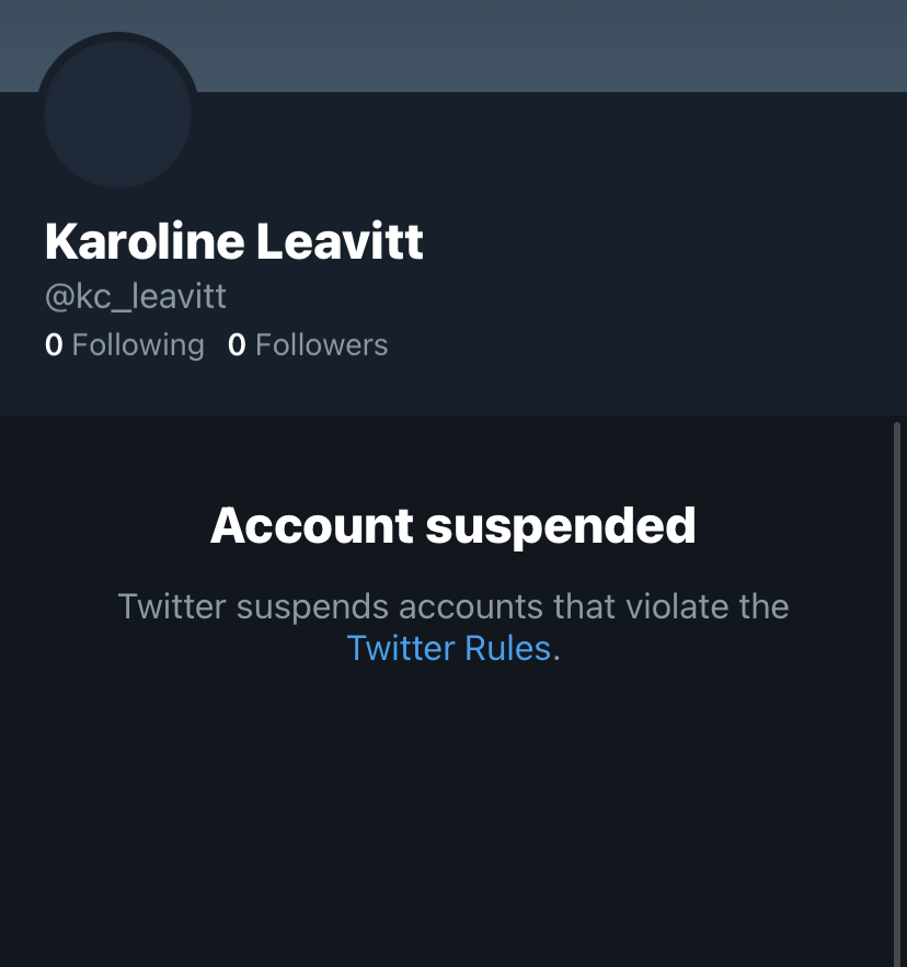 “Outrageous! Hours after Karoline Leavitt spoke before RCRC, she finds her Twitter account shut down by the state big tech censors.” they tweeted.